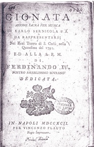 * Gionata (azione sacra per musica ovvero oratorio, Teatro San Carlo, Napoli 4 marzo 1792, musica di Niccolò Piccinni),