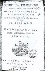 * Olindo e Sofronia (azione tragica per musica in tre atti, Teatro San Carlo, Napoli 17 febbraio 1793, musica di Gaetano Andreozzi), poi col titolo Amelia ed Ottiero (Trieste 1797)